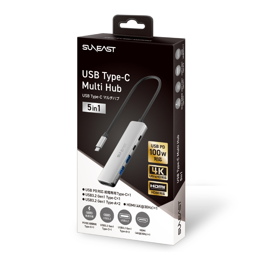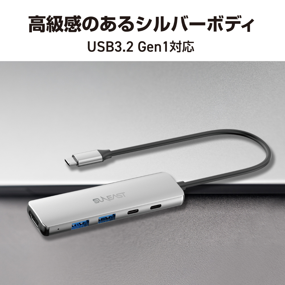 映像変換アダプタ [USB-C オス→メス HDMI /USB-Ax2+USB-C+USB-Cメス(給電用 PD100W対応)] 4K対応 シルバー SE-HUB051JDPNNF [4K]