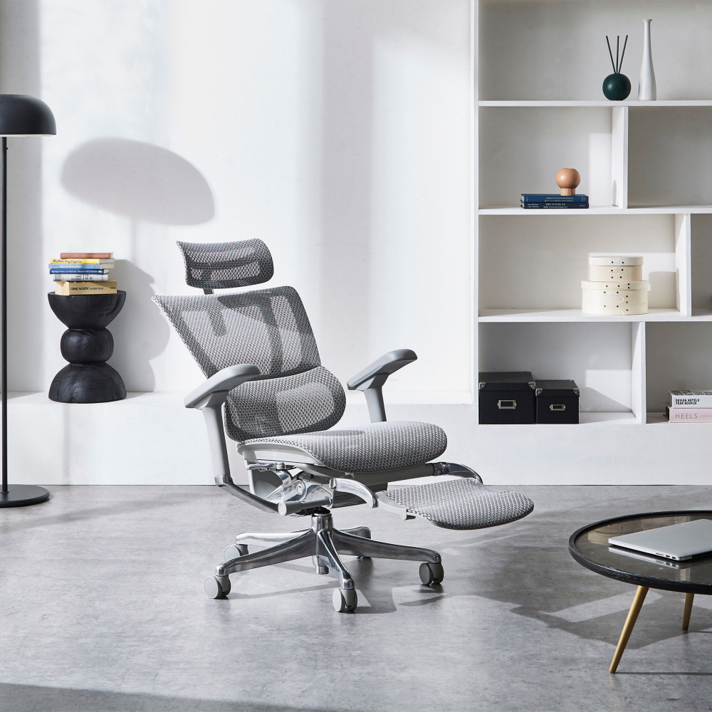 独立式ランバーサポートや4Dアームレストなど、エルゴヒューマンの基本機能をしっかりと受け継ぎながら、よりスマートに、そして柔軟に進化したFITシリーズ。オットマンを標準装備したモデルは長時間の集中作業、リラックスしたオフのひとときまで、常に変化する姿勢にフィットしてデスクワークをサポートします。