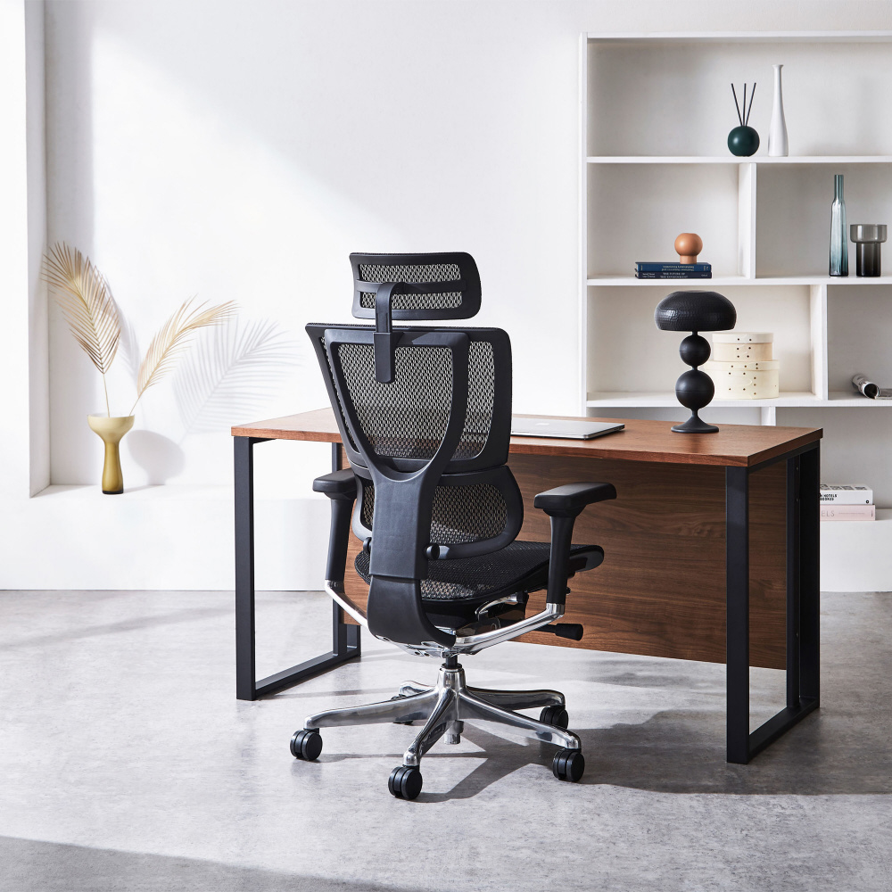 弾力性に優れたメッシュを採用。多様な座り方に対応し、長時間のデスクワークをサポート。高級感と耐久性のあるアルミポリッシュフレームを標準採用。60mmサイズの双輪PUキャスターを標準搭載。