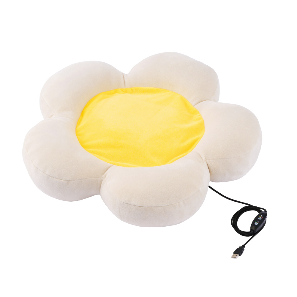 柔らかな肌触りとふっくらした花びらのデザインで愛犬や愛猫がリラックスできる、USB給電式のヒーティングクッションです。