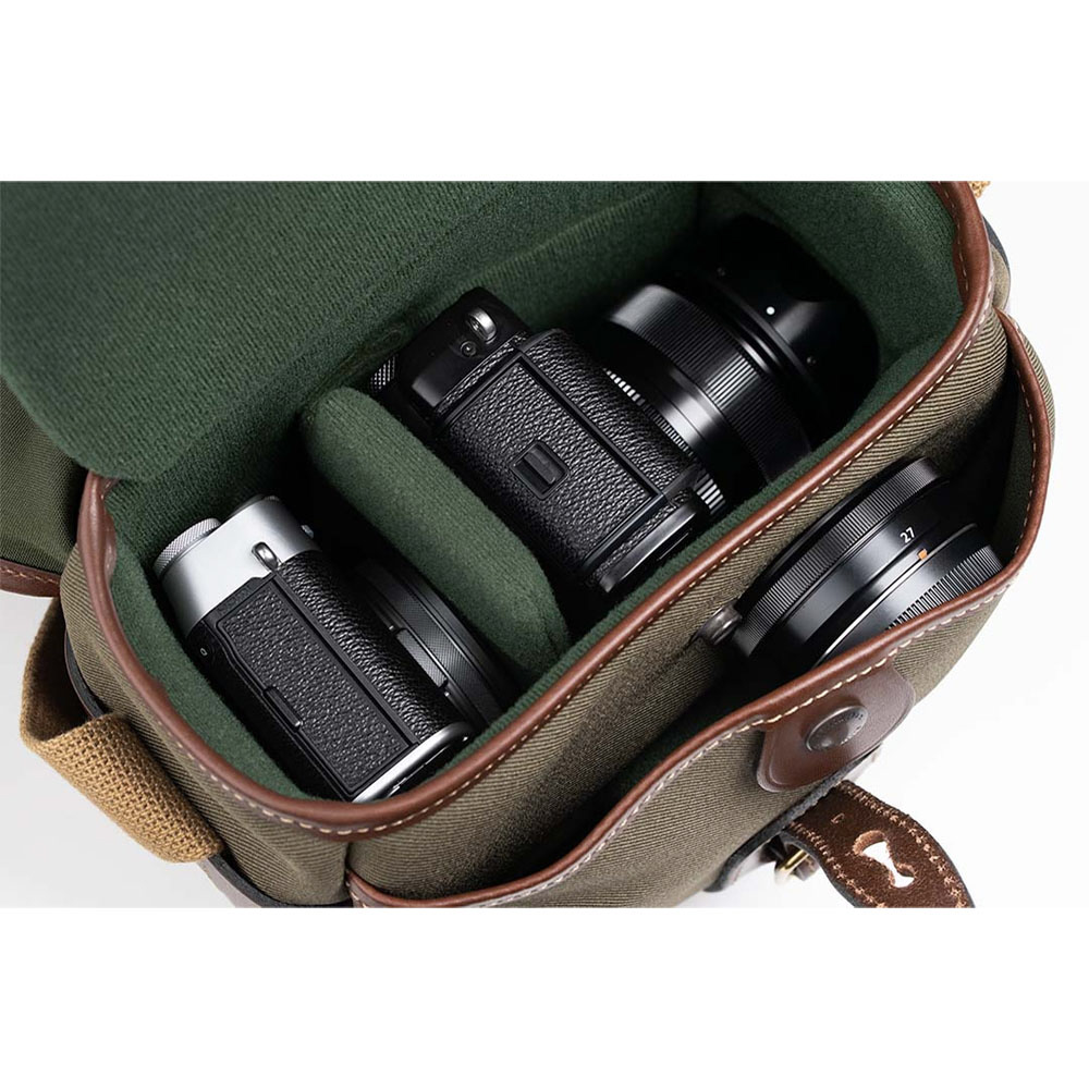 ハドレーシリーズ最小モデル。レンジファインダーカメラ2台、またはレンズ付きデジタル一眼1台を収納可能。防水性と耐久性に優れた3層構造のオリジナルファブリック。全面パッド加工。フルグレインレザーと真鍮製の固定具。片手で開閉可能なクイックリリースシステム。AVEAポケット取付用の丈夫なレザーサイドパッチ。