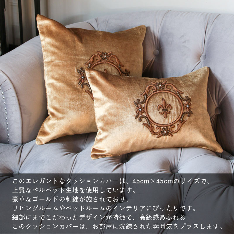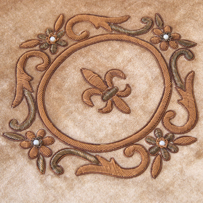 ビーズ 刺繍デザインクッションカバー ゴールドリリー La deco