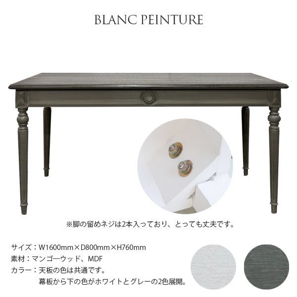脚がお洒落なフレンチスタイルダイニングテーブル、1600mmサイズでコンパクトに使えます