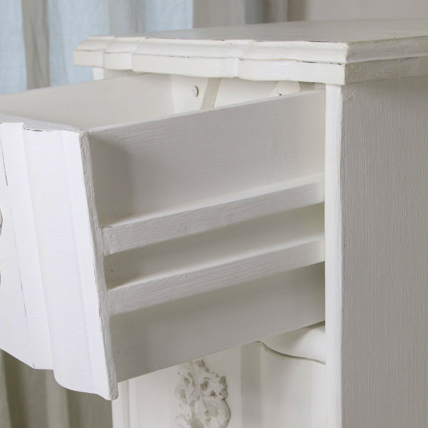 幅の狭い5段チェスト、前面はフレンチらしい曲線シェイプ