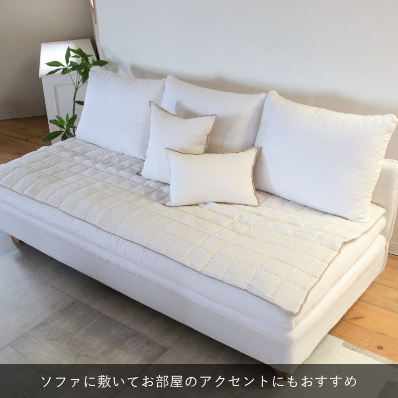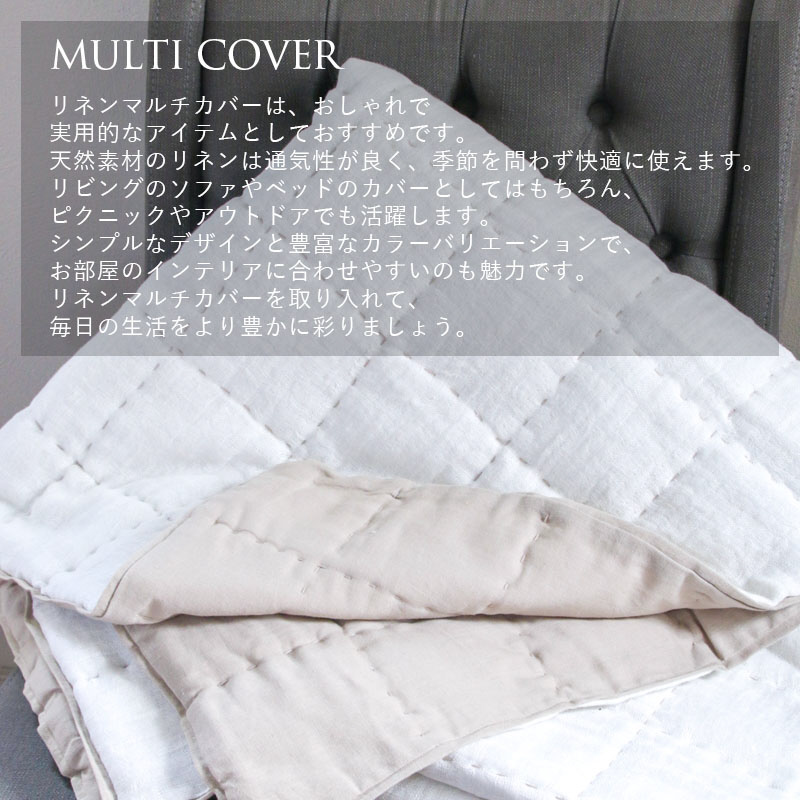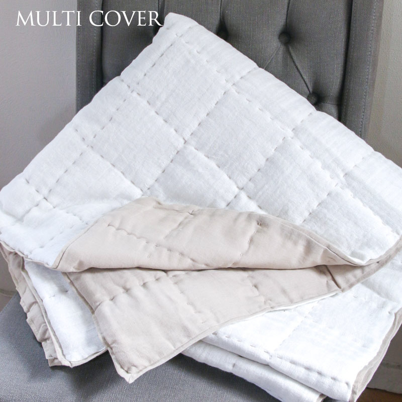 表面にリネン、裏面にコットンを使ったリバーシブルタイプのマルチカバー