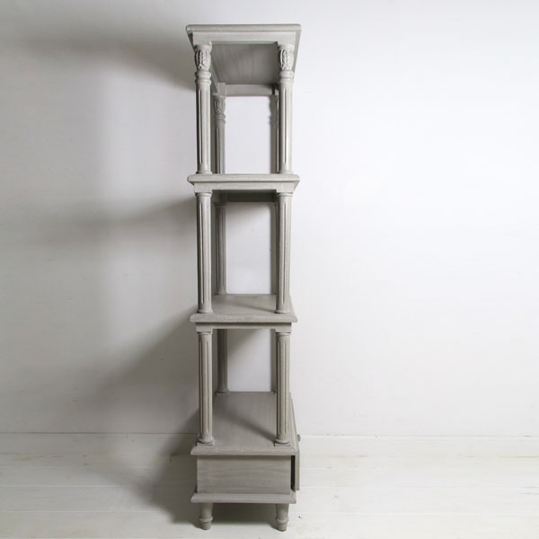 コンパクトなブックシェルフ、高さはほどよい145cmで引出しが1杯ついています