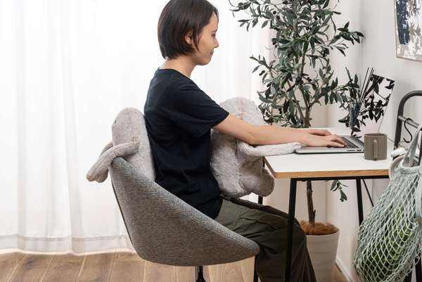 デスク作業の際にデスクとお腹の隙間に挟むことで自然と背筋が伸びやすくなり、猫背姿勢を防止してくれます。正しい姿勢を保つことで、肩こりや腰痛の対策にもなります。