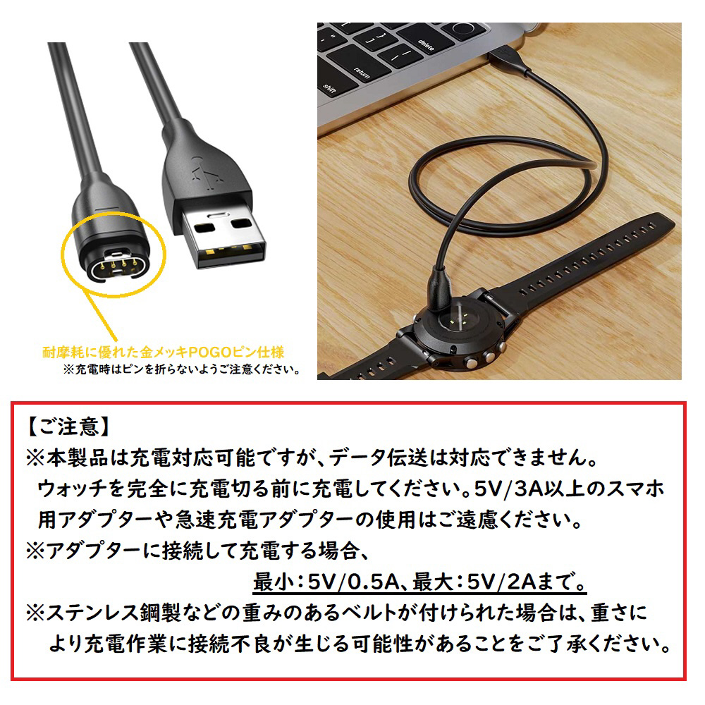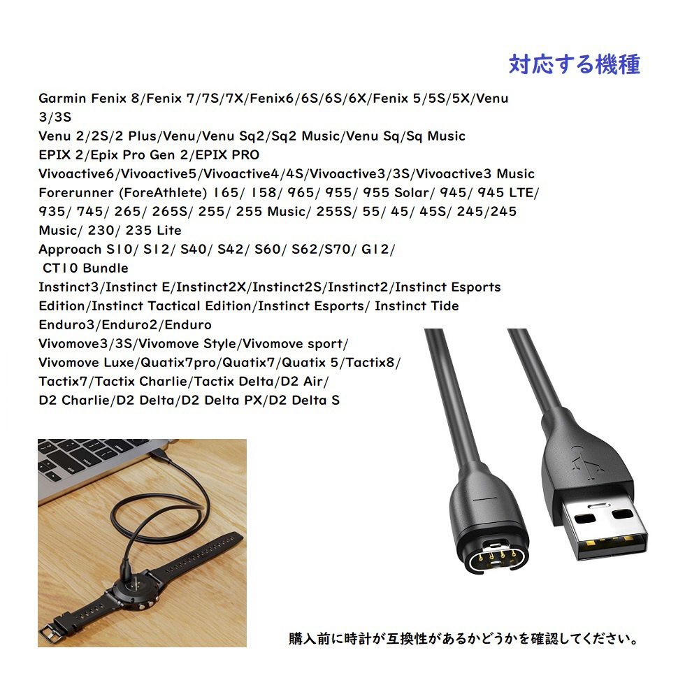 Garmin用スマートウォッチ充電ケーブル 1.0m(USB TYPE-A)
