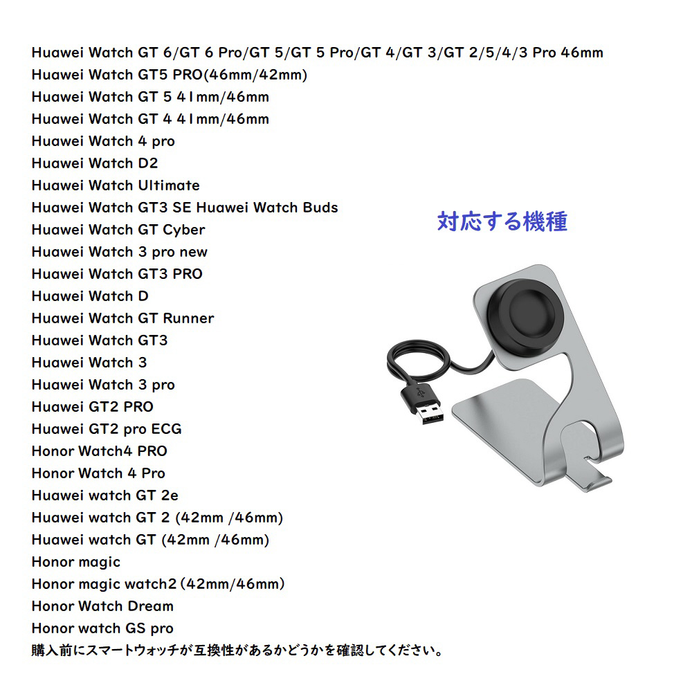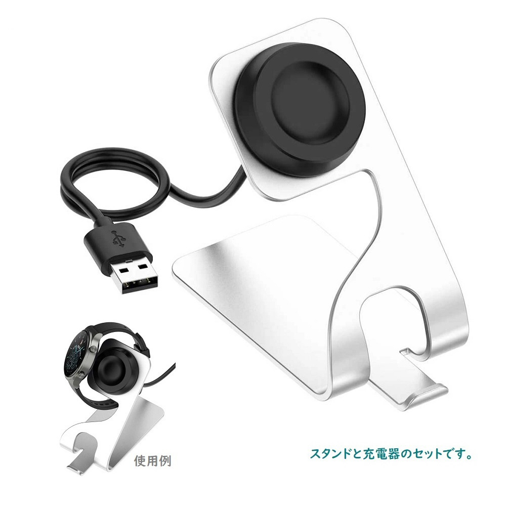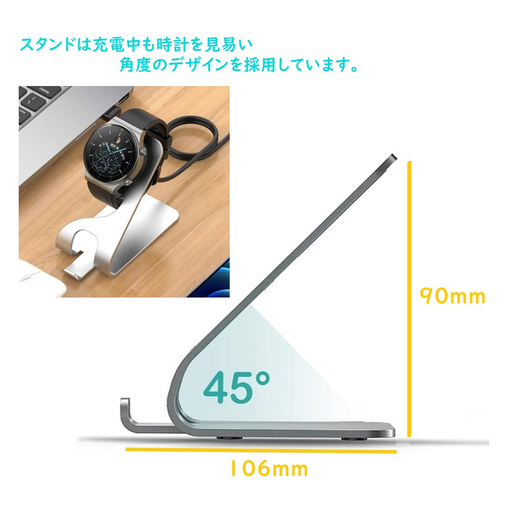 Huawei用 スマートウォッチ充電器スタンド(充電ケーブル付き) シルバー