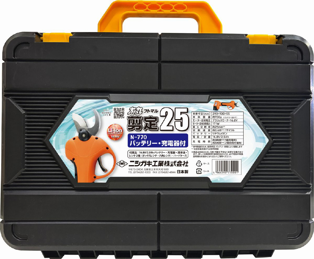 太丸剪定25は生木直径25mmまで切れてバッテリー長持ちタイプです。