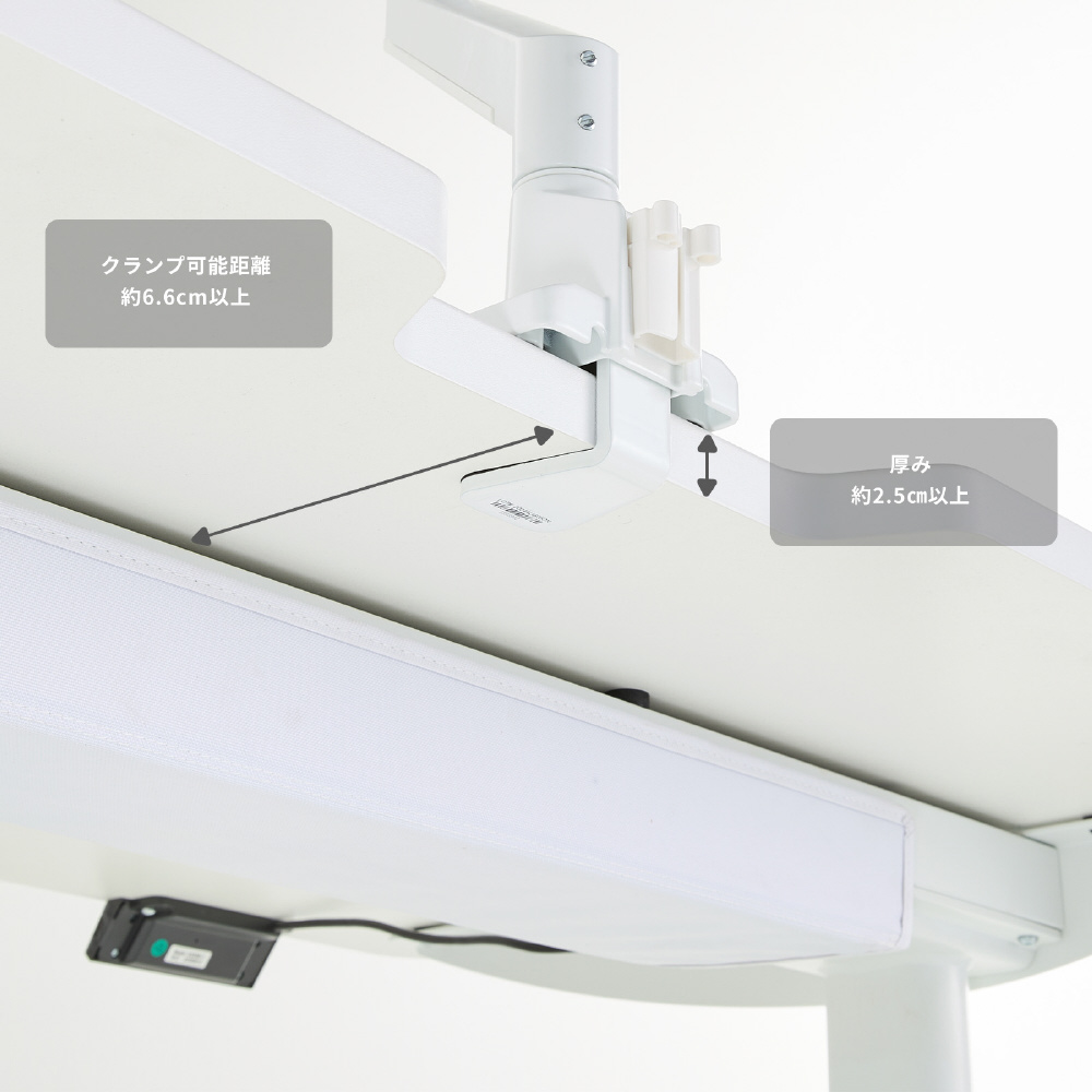 デスク3面どこでもモニターアームやマイクアームの設置が可能。