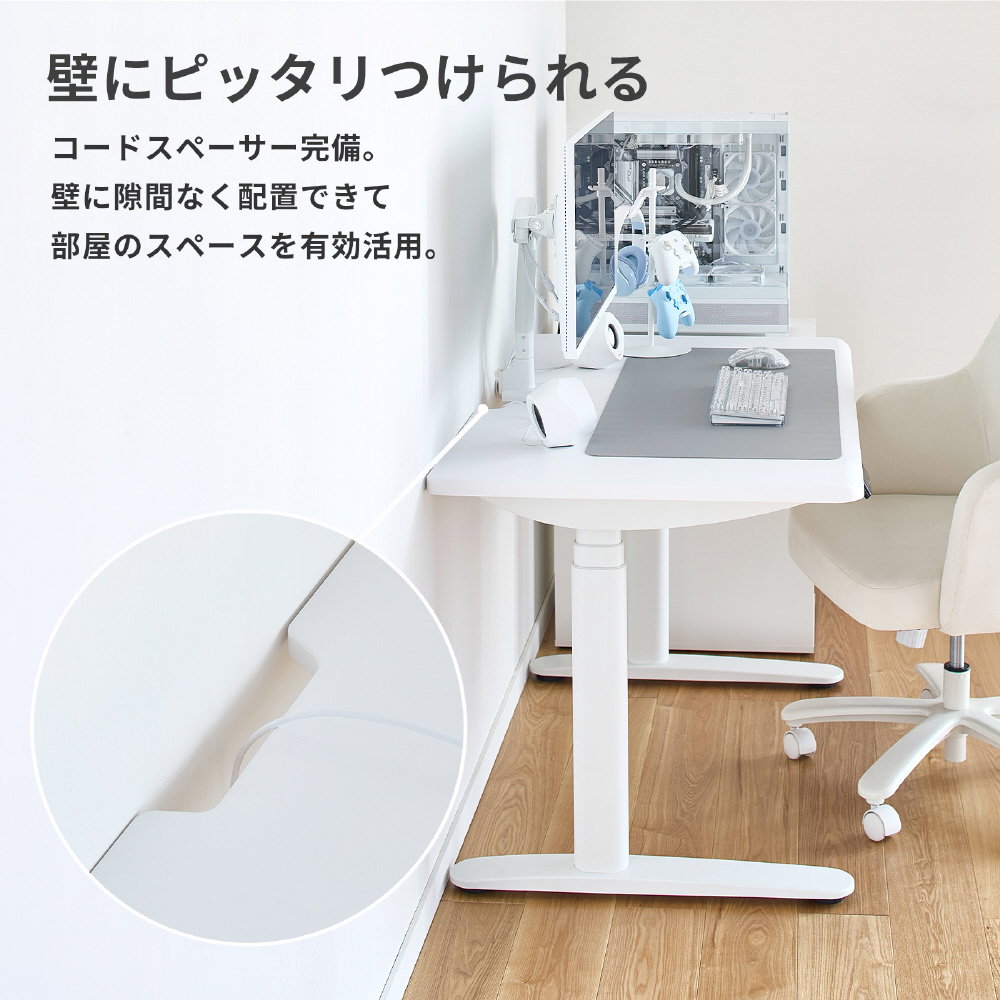 肘にやさしく、空間にもすっと溶けこむ“とがり”のない、空気までやわらぐ電動昇降デスク。