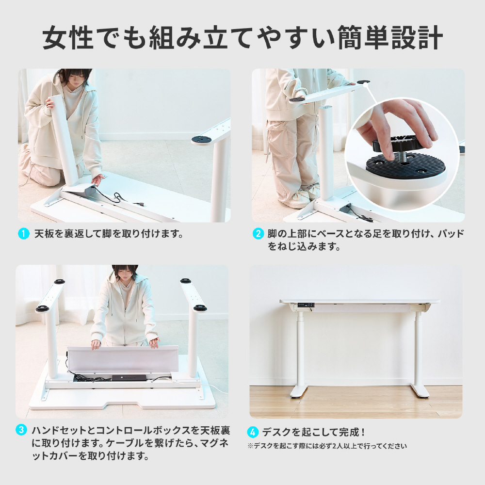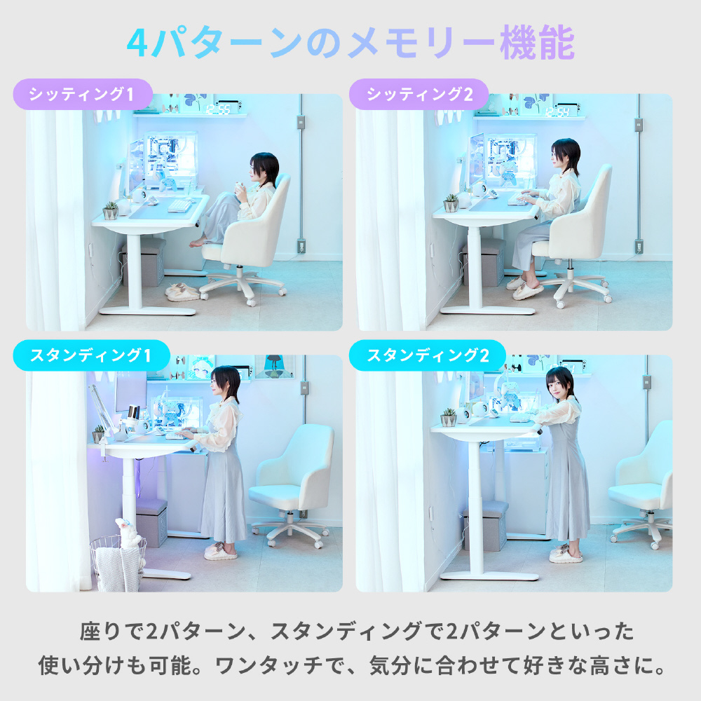 昇降機能、安全装置、誤操作を防ぐロック機能、4つまで記録できるメモリ機能を搭載。