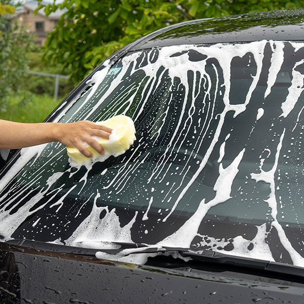 3.中性ノーマルカーシャンプーを使用して洗車用のスポンジなどで施工面全体を洗浄する。