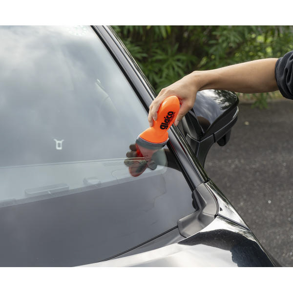 どのようなフロントガラスの形状でも隅々までしっかり塗れる新型ヘッド。