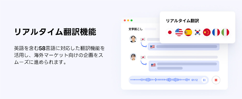 録音、リアルタイム文字起こし、翻訳、要約、思考整理まで