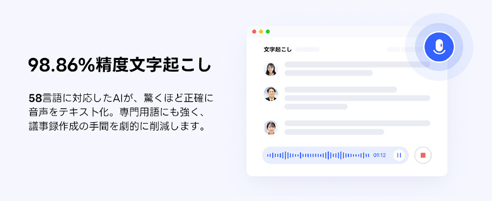 専門用語にも強く、議事録作成の手間を劇的に削減します。