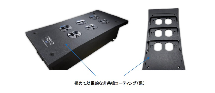内部レイアウトは、それぞれ独立配線された6口(2口 x 3)のFURUTECH GTX-D NCF(R)高性能壁コンセントが配置されたゾーンともう一つのゾーンに分断することで、最大限の遮音性とノイズ抑制を実現しています。