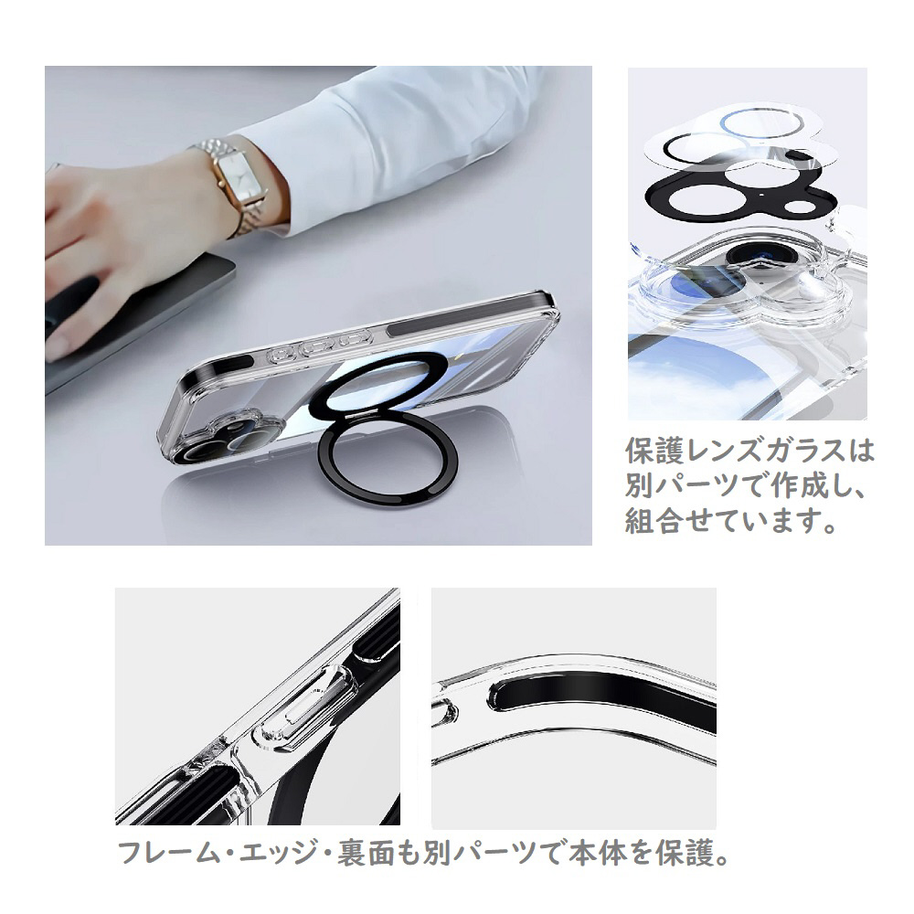 透明な背面光沢仕上げで輝くフレーム・エッジ・パーツを採用、iPhone17Promaxの高級感と個性を際立たせます。