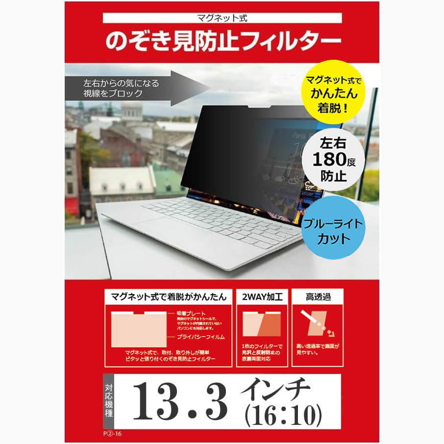 13.3インチ (16:10) マグネット式 のぞき見防止 プライバシー フィルター ブルーライトカット マグネットで取り外しできるタイプ 汎用
