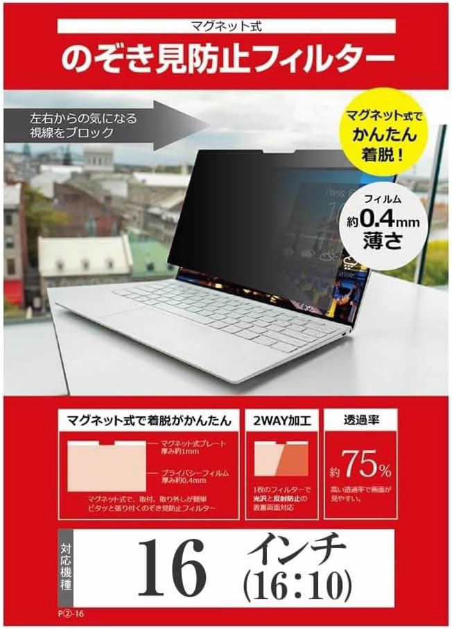 16インチ(16:10) 用 マグネット式 のぞき見防止 フィルター free-private-mag-16b