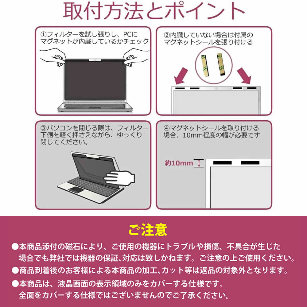 16インチ(16:10) マグネット式 のぞき見防止 プライバシー フィルター ブルーライトカット マグネットで取り外しできるタイプ 汎用