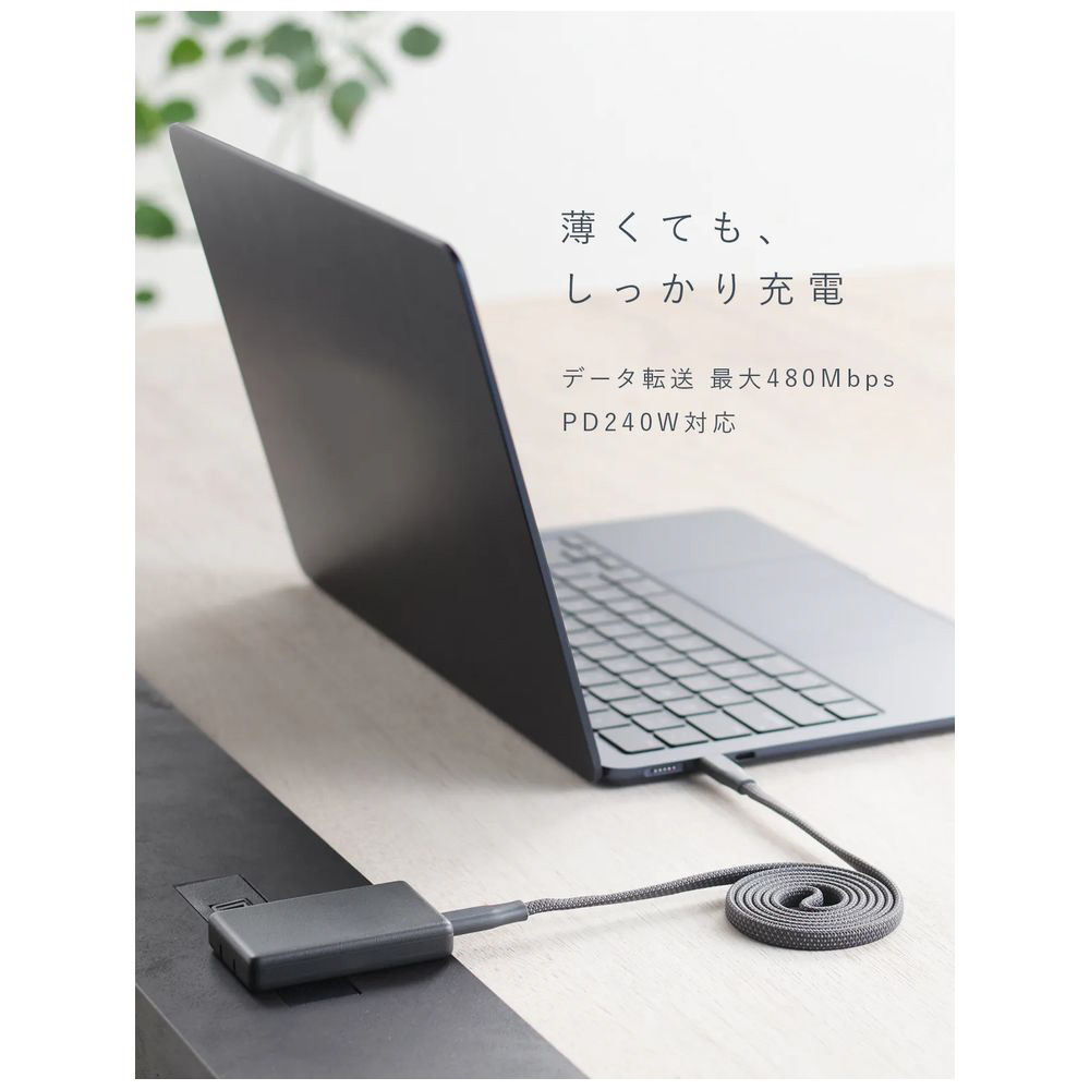 PD急速充電規格に対応。最大240Wの充電にお使いいただけます。スマホやイヤホンはもちろん、デジカメやノートPCにも安定給電できる急速充電ケーブルです。データ転送はUSB2.0、最大480Mbpsに対応しています。