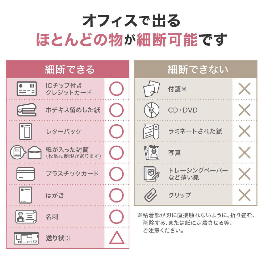 最大細断枚数 A4サイズ用紙(上質紙 70g/m2) 8枚