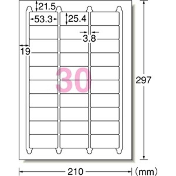 〔各種プリンタ〕ラベルシール 強粘着タイプ 四辺余白付 角丸(53.3x25.4x0.07mm) ホワイト 78230 [A4 /18シート /30面 /マット]