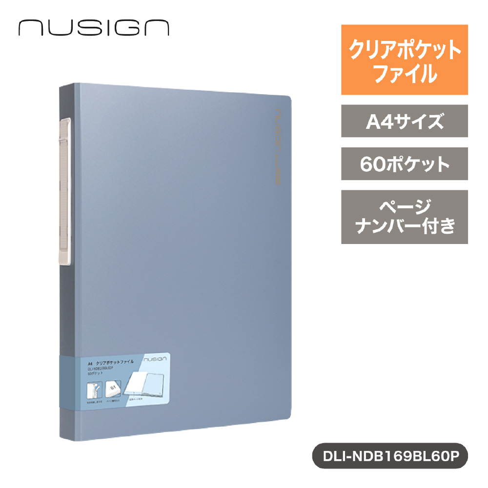 A4クリアポケットファイル(60P) nusign(ニューサイン) ブルー DLI-NDB169BL60P