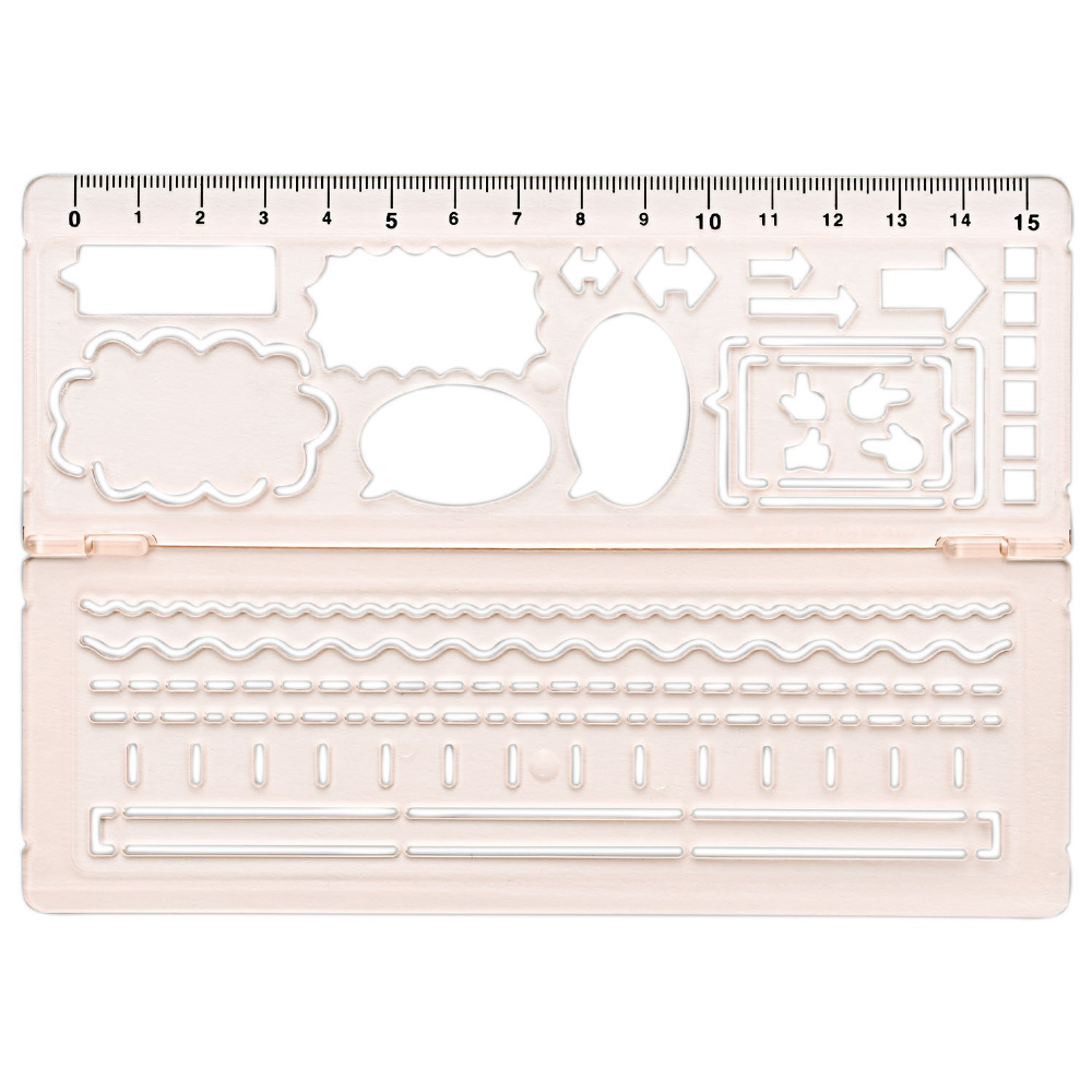 見やすいノートが作れるテンプレート 勉強用のノートを作る時に、吹き出し、矢印、枠線、チェックボックスがキレイに描ける ノート作りに役立つ図形が23種類描ける 図形が描きやすい色透明 折りたたんでコンパクトに携帯できる 15cmメモリ付