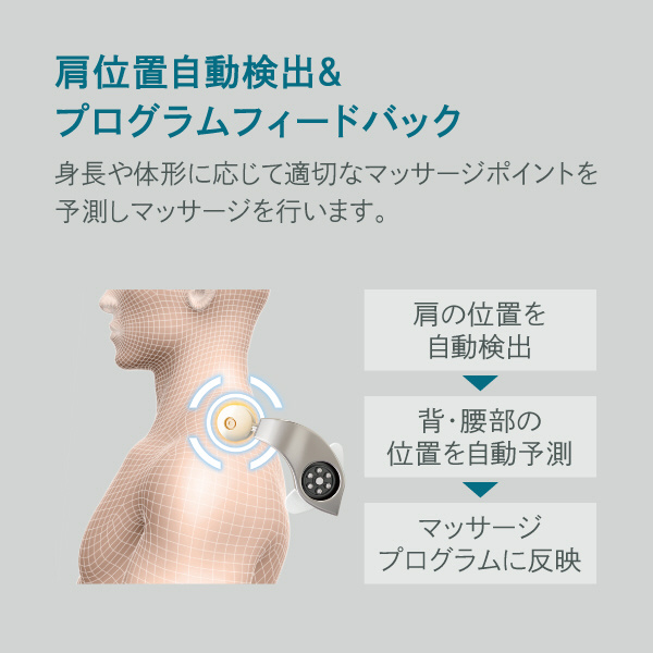 肩位置を自動で検出し、背・腰位置を予測し、マッサージに反映します。