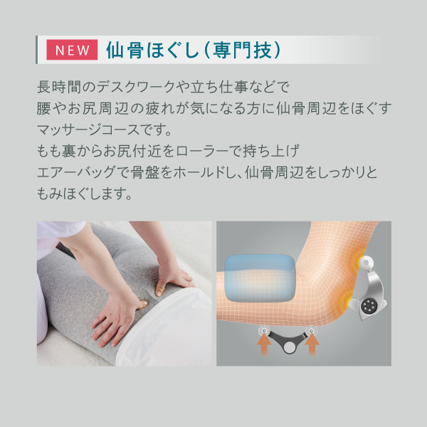 仙骨まわりを集中的にマッサージする「仙骨ほぐし」を追加。