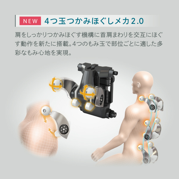また、4つのもみ玉で部位ごとに適した多彩なもみ心地を実現しました。