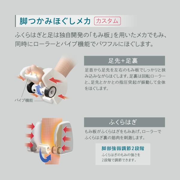 ■お好みに合わせて強弱調節が可能「脚つかみほぐしメカ カスタム」
