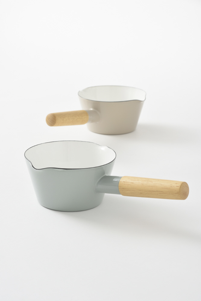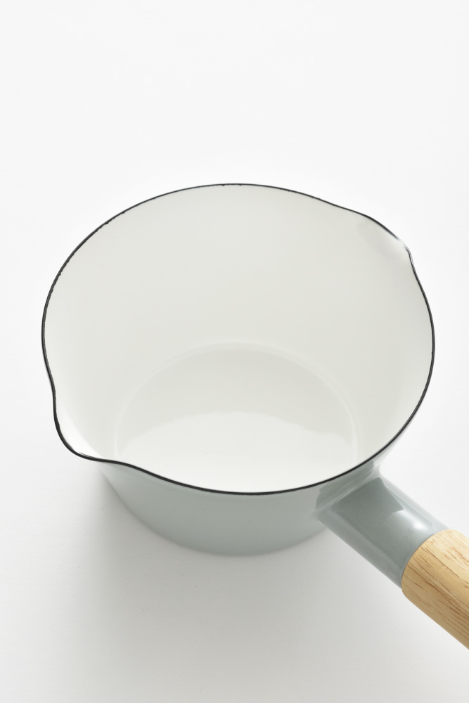 ■注ぎ口が付いているので、ミルクやスープをこぼさずに注げます。ハンドルは手になじみやすく、熱くなりにくい天然木を使用。