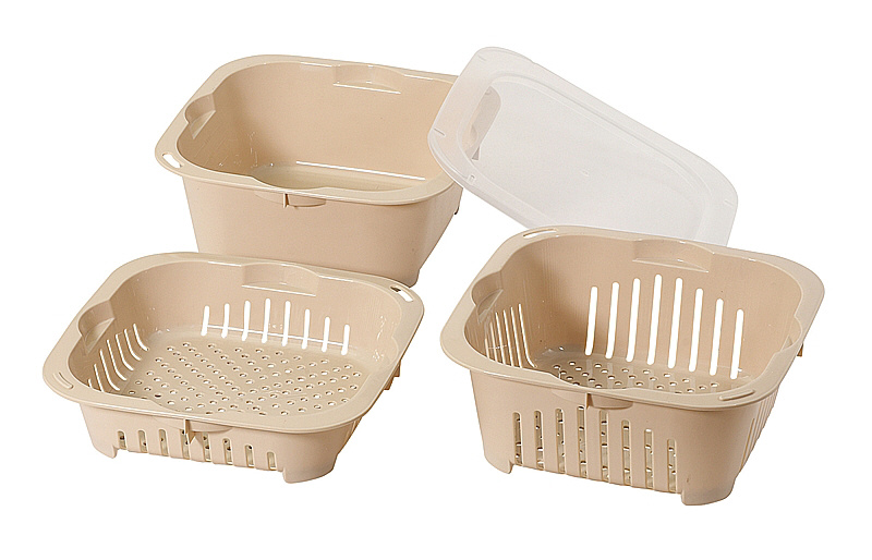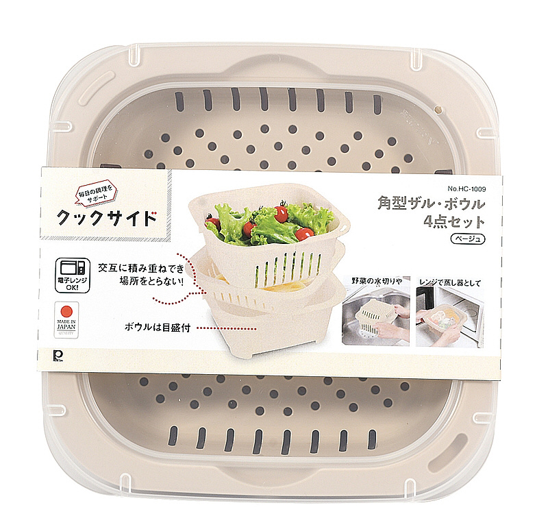 クックサイド 角型ザル・ボウル4点セット(ベージュ) HC-1009