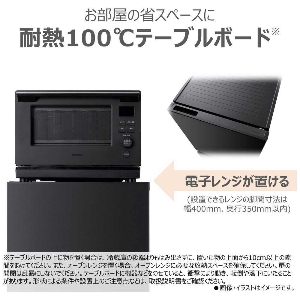 冷蔵庫の上部に耐熱ボードを採用し、レンジの配置も可能。
