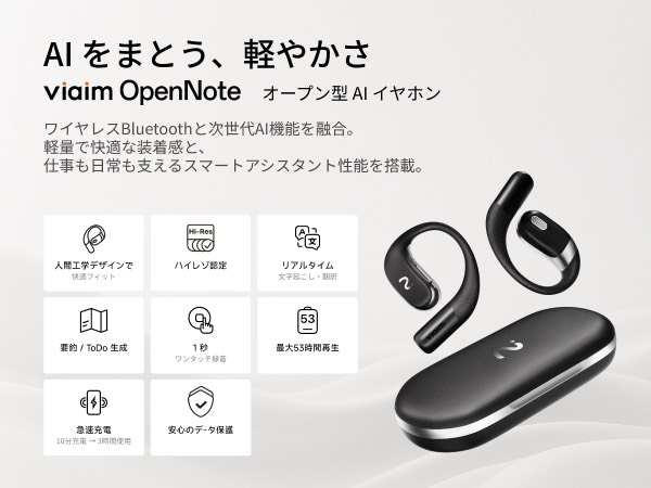 AIイヤホンレコーダー OpenNote-Black ブラック XFVI-E97 [Bluetooth対応 /ハイレゾ対応]