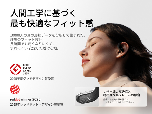 人間の耳介データモデルに基づいた再設計により、重量バランスを最適化。