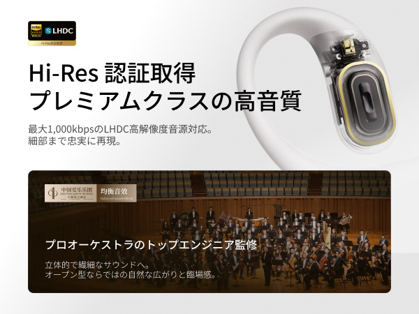 オープンイヤーデザインは、オフィスでの長時間使用はもちろん、スポーツをする時や観戦時でも、一日中快適さを実現します。