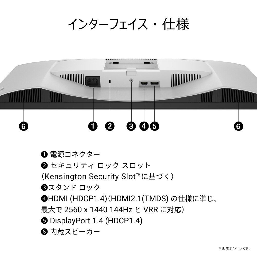 インターフェイス HDMI(HDCP1.4)(HDMI 2.1、144Hz、TMDS、VRRをサポート)×1、DP1.4(HDCP1.4)×1