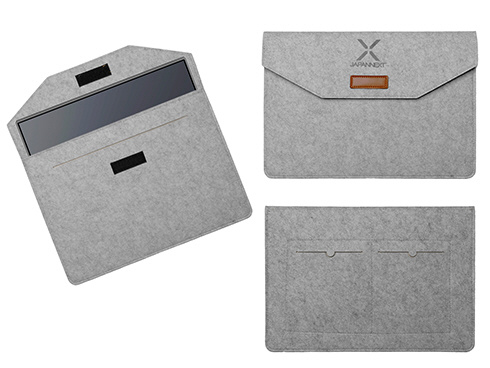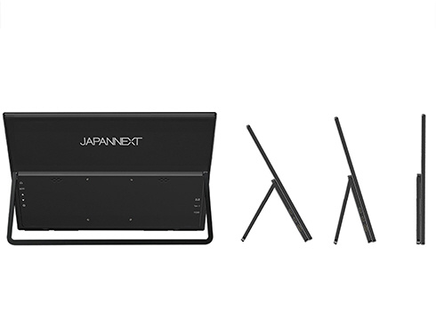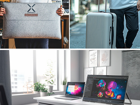 モニター背面にキックスタンドを搭載しているので自立して使用することができ、どこでもデュアルディスプレイ環境の構築が可能です。また、携帯時に便利なフェルトケースを同梱。製品本体をホコリや傷から守り、持ち運びに最適です。