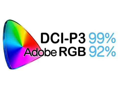 最大輝度250cd/m2の液晶パネルは、DCI-P3:99%、Adobe RGB:92%の広色域に対応し、動画や写真も色鮮やかに美しく表示します。
