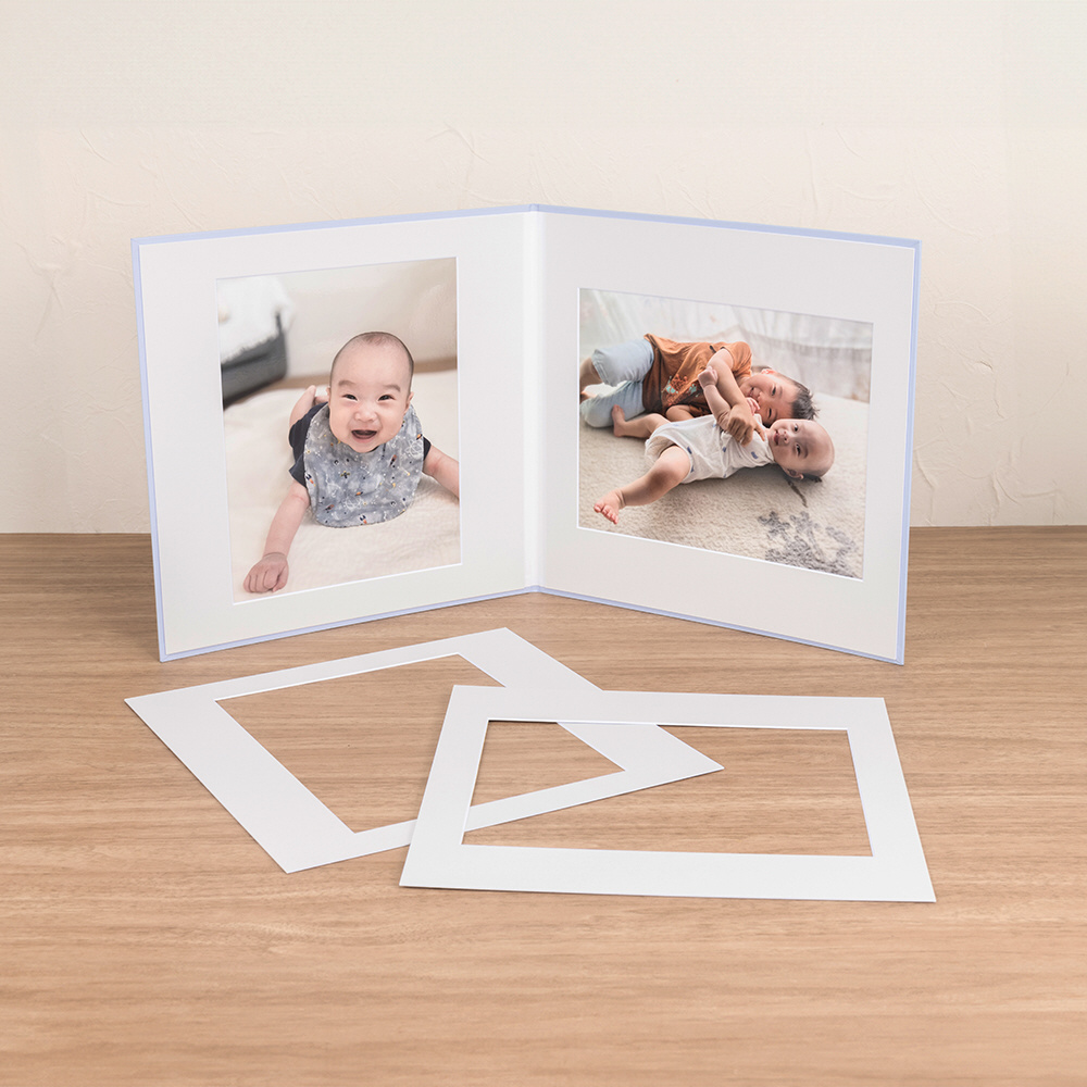 ■お宮参り・七五三・入学式・成人式・結婚式など、さまざまなシーンでお使いいただける、写真用二つ折り台紙です。