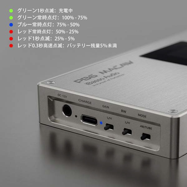 ●付属品:4.4mm to 4.4mm ケーブル、3.5mm to 3.5mm ケーブル、12V 電源ケーブル(DCモード専用)、充電用USB A to Cケーブル、キャリングポーチ、※12V電源ケーブルでは充電できません。