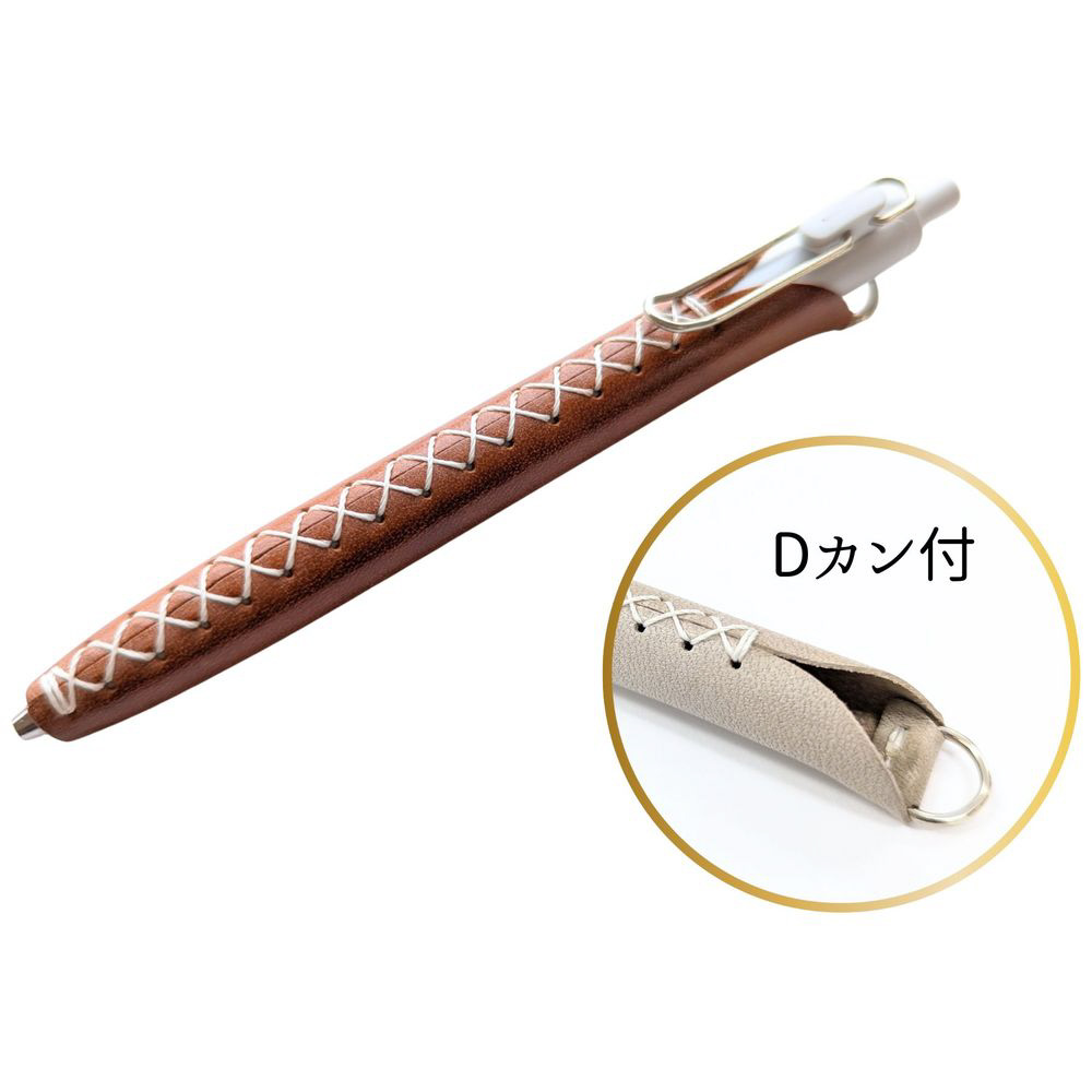 本革のペンカバーLUCE Pen Fit Dカン付タイプ。ネックストラップを付けてすぐ書ける!