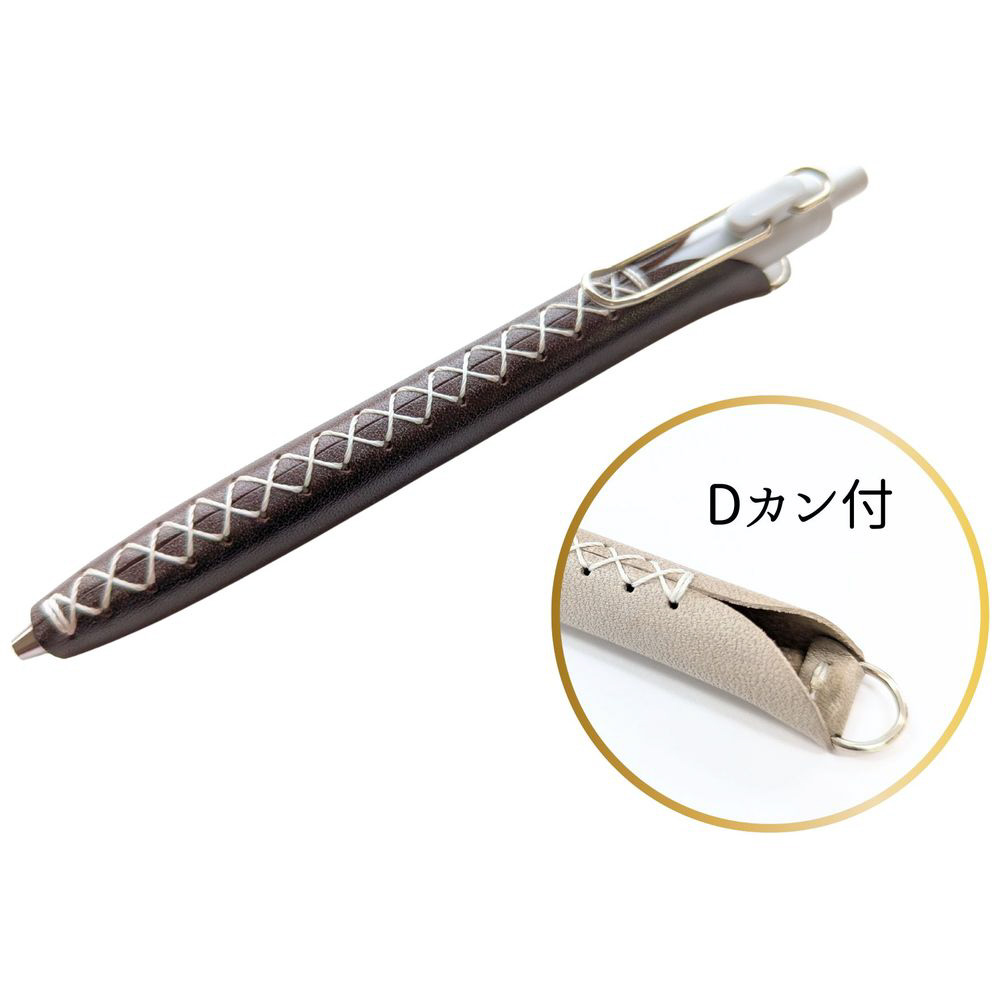 本革のペンカバーLUCE Pen Fit Dカン付タイプ。ネックストラップを付けてすぐ書ける!