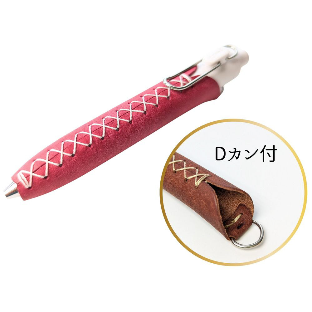 本革のペンカバーLUCE Pen Fit Dカン付タイプ。ネックストラップを付けてすぐ書ける!