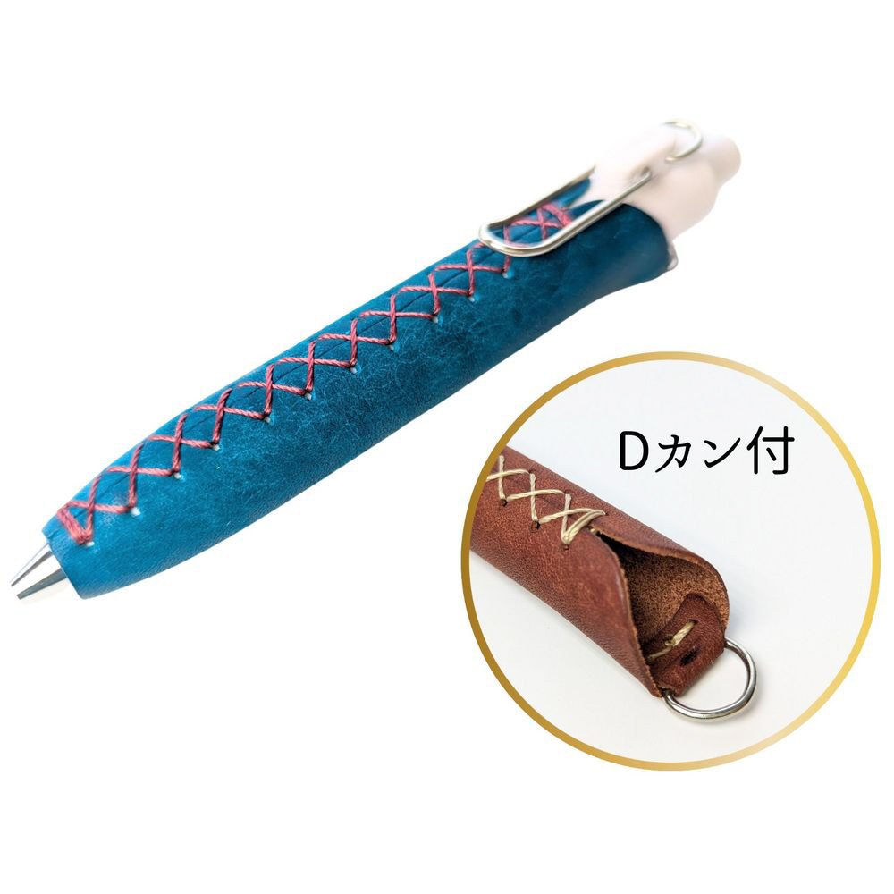 本革のペンカバーLUCE Pen Fit Dカン付タイプ。ネックストラップを付けてすぐ書ける!